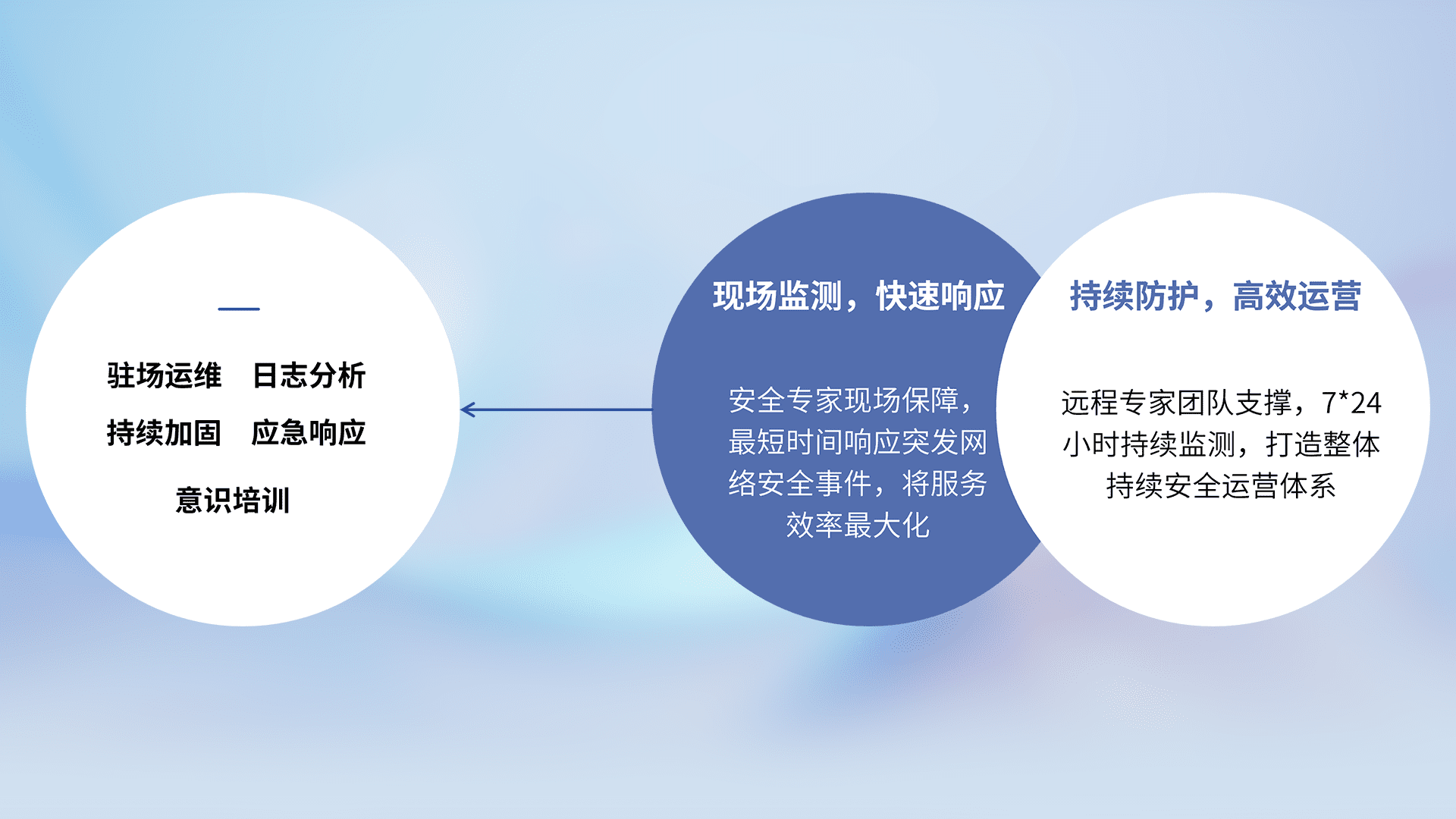 针对客户行业特性,,,提供专属的一站式安全管理服务,,,,帮助客户全面感知网络空间威胁,,,,通过安全专家的线上、、线下防护支持,,,实现风险闭环,,将安全保障常态化,,为客户打造常态化安全运维运营服务。。。。